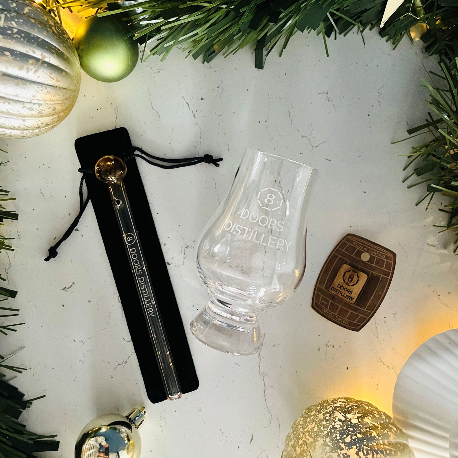 A thoughtful little bundle for the whisky fan who appreciates craft and character. This set includes the iconic Glencairn glass, a hand-blown water dropper for precision dramming, and our 8 Doors Distillery barrel stave pin badge - a small but meaningful nod to the spirit of John O’Groats. A charming gift with a touch of distillery pride.