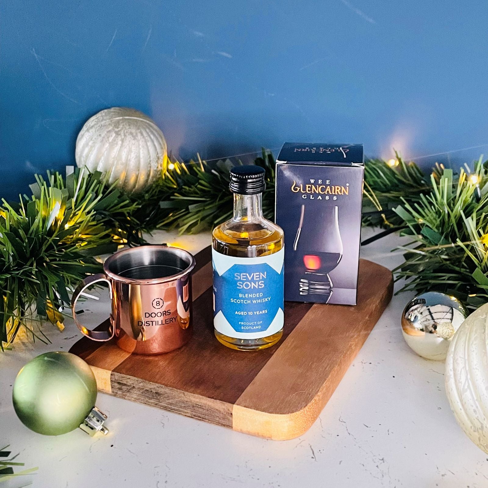 A perfect introduction to Seven Sons. This gift set includes a 5cl miniature of our 10yo Blended Scotch Whisky, a mini Glencairn glass, and a copper jigger - ideal for discovering the craftsmanship behind every dram.