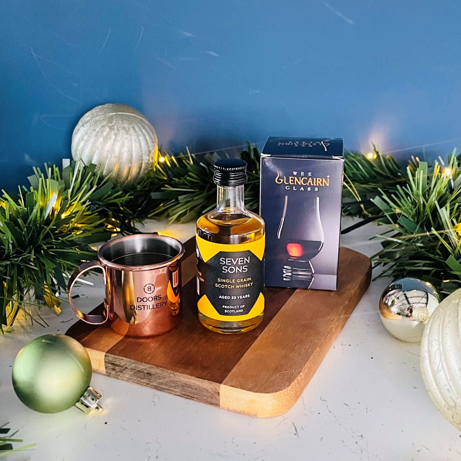 A perfect introduction to Seven Sons. This gift set includes a 5cl miniature of our 33yo Single Grain Whisky, a mini Glencairn glass, and a copper jigger - ideal for discovering the craftsmanship behind every dram.